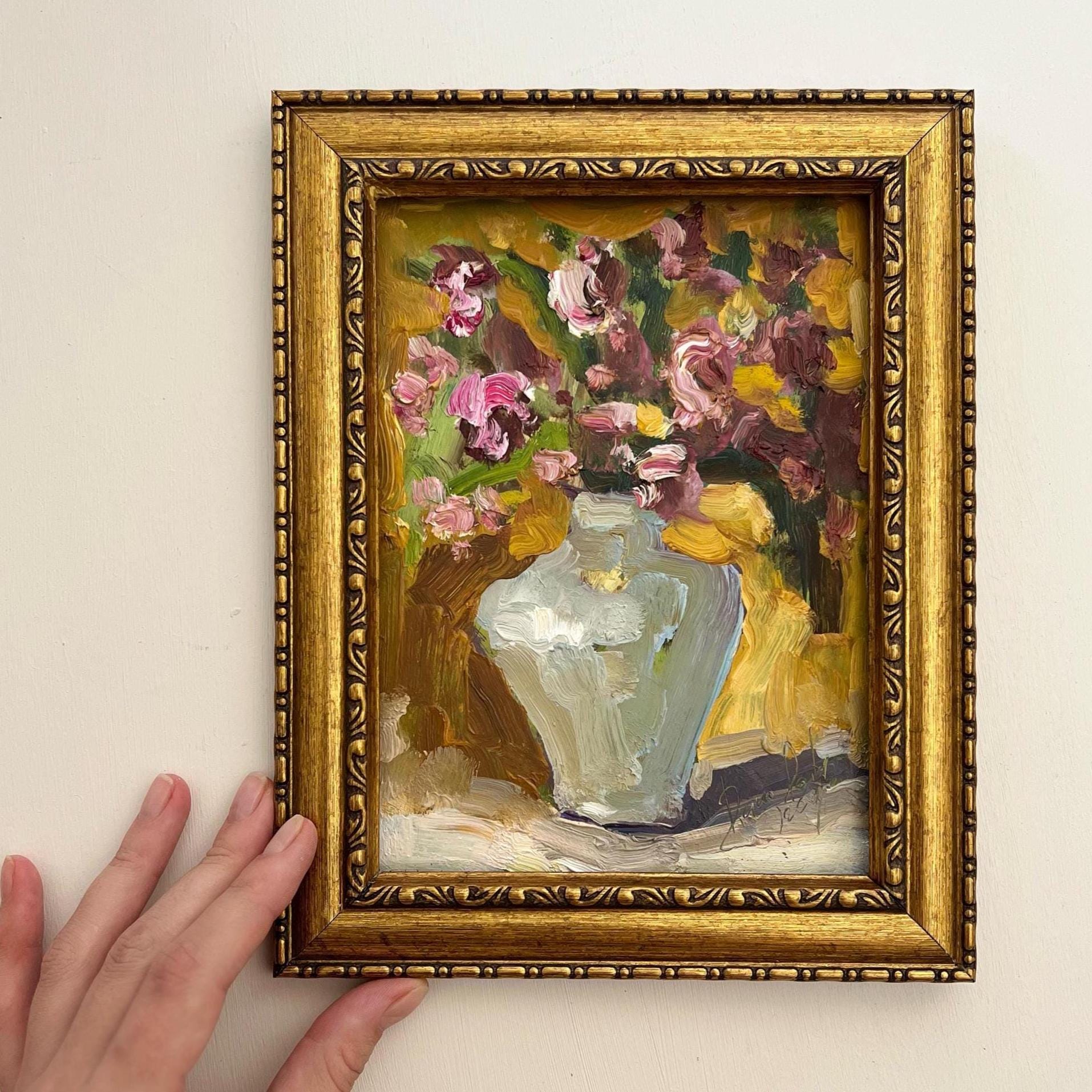 Floral Painting Floral Original Art Peonies Impasto Painting Flowers Small Painting Impasto Peony 3d painting 6 by 8 by DiyaSanat