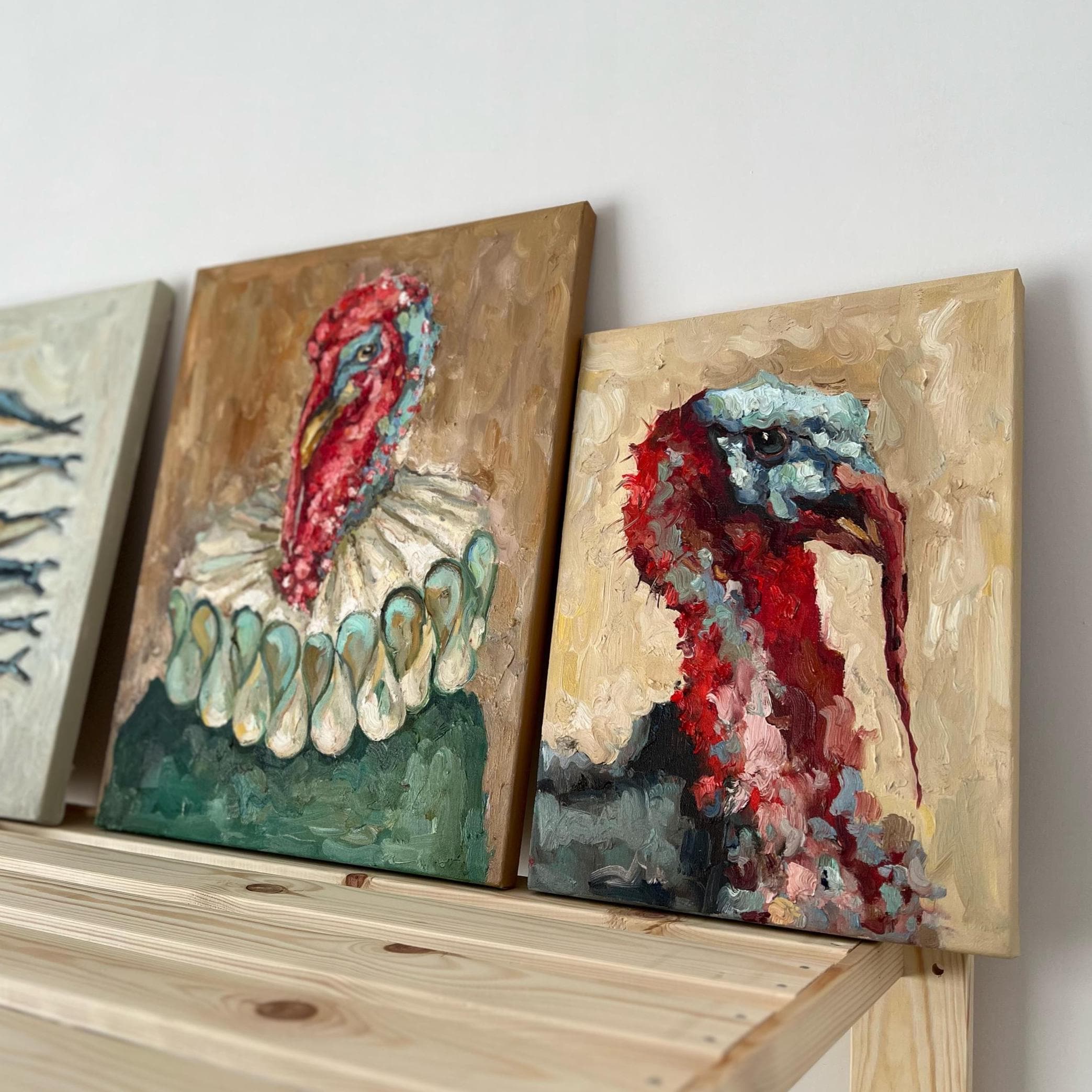 I use oil paint (and not acrylic). Oil needs time to get dry in fresh air as the paint is oil based (as opposed to acrylic that is based on water). Also I use thick layers of paint in my painting (impasto style) so it need more time.