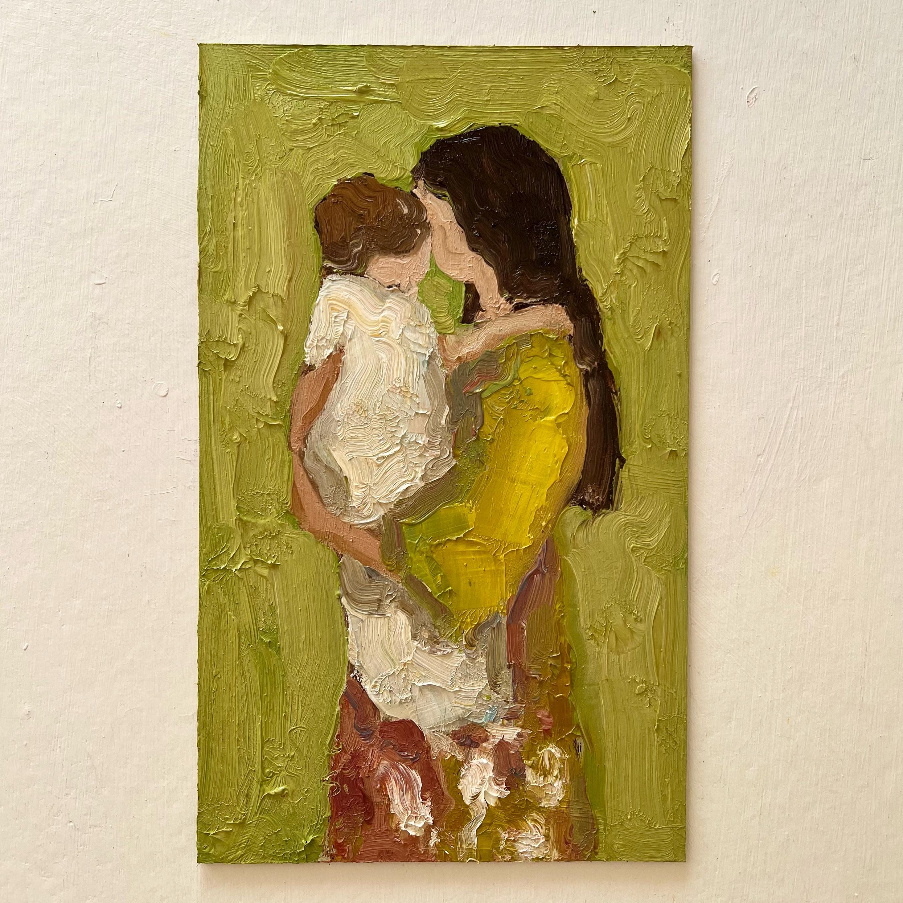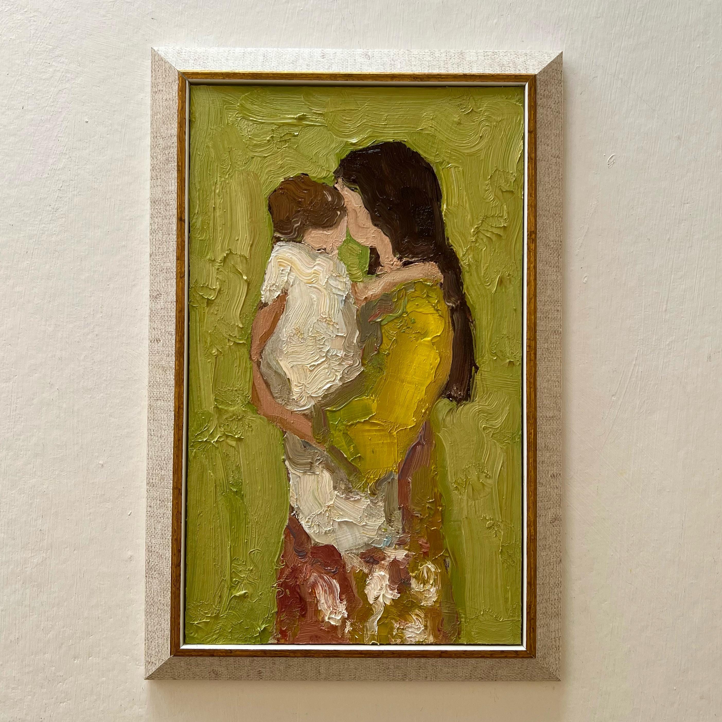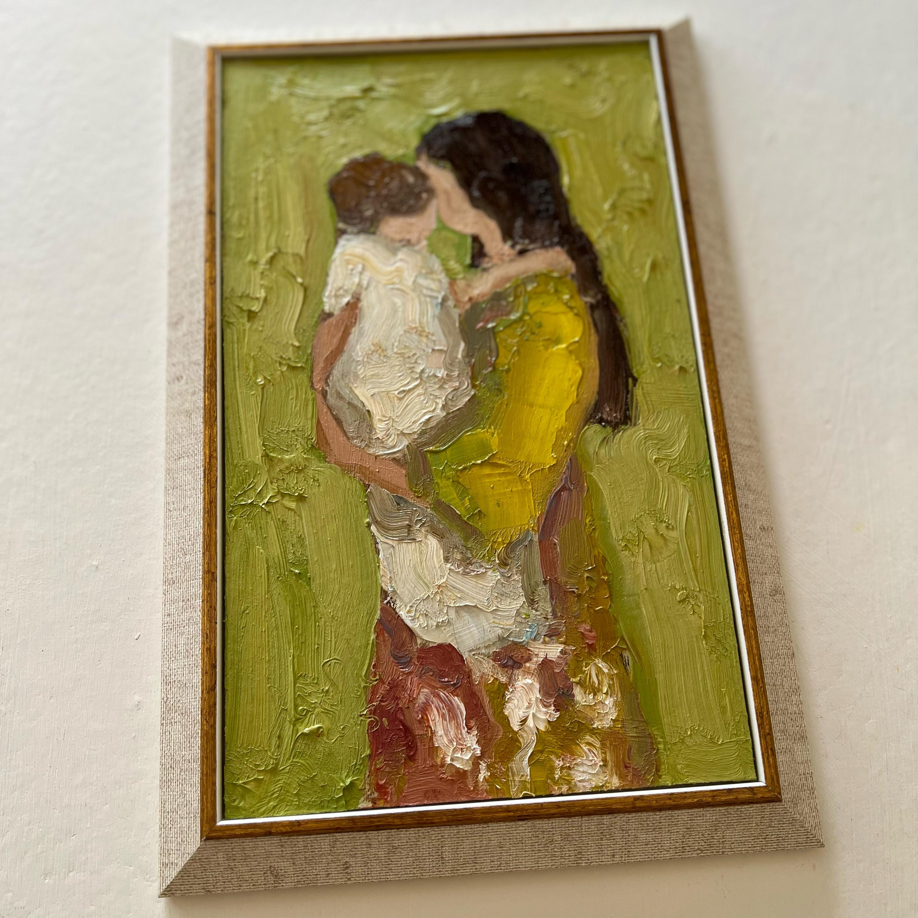 Mother with Baby Original Oil Painting,Woman Portrait Wall Art,Mom Child Room Decor, Boho Stile Fine Art, Minimalistic art by DiyaSanat