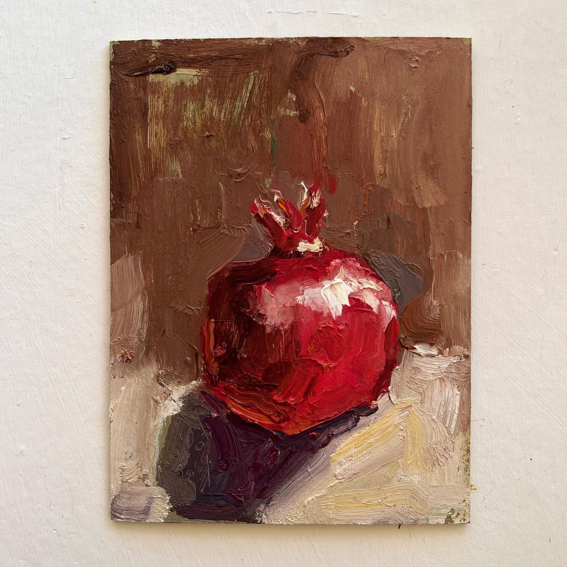 Garnet Painting Kitchen Wall Art Pomegranate Impasto Abstract Artwork Oil Painting Still Life Painting 6 by 8 by DiyaSanat