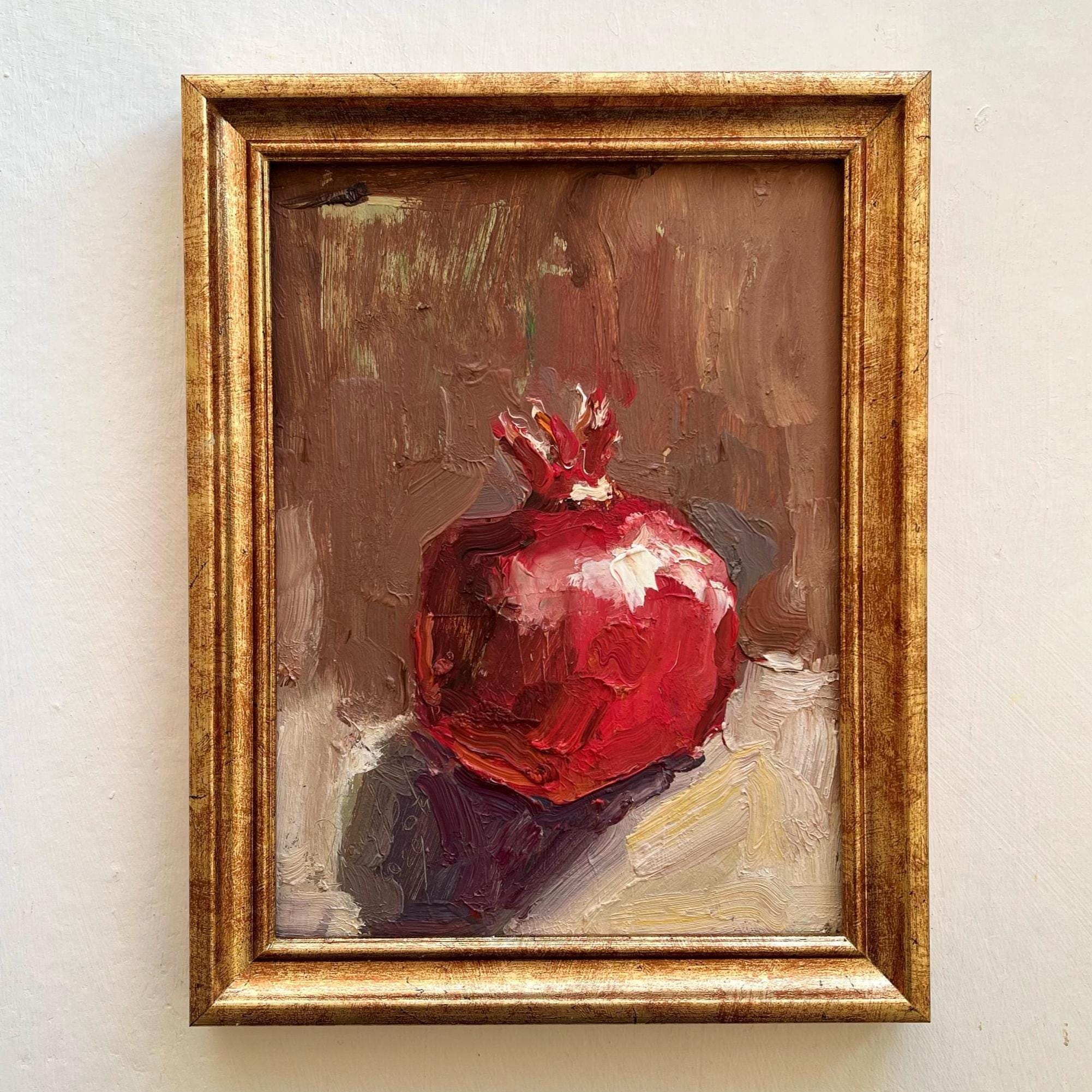 Pomegranate Oil Painting: Impasto Still Life Kitchen Art