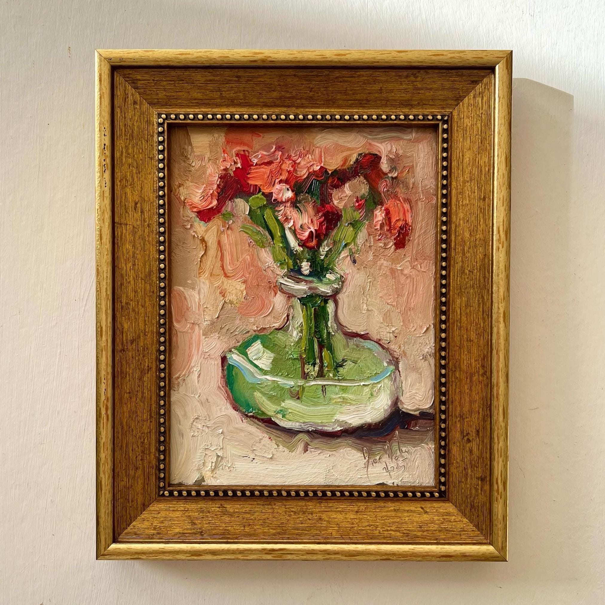 Flowers Oil Painting: Impasto Floral Art, Semi Abstract Artwork