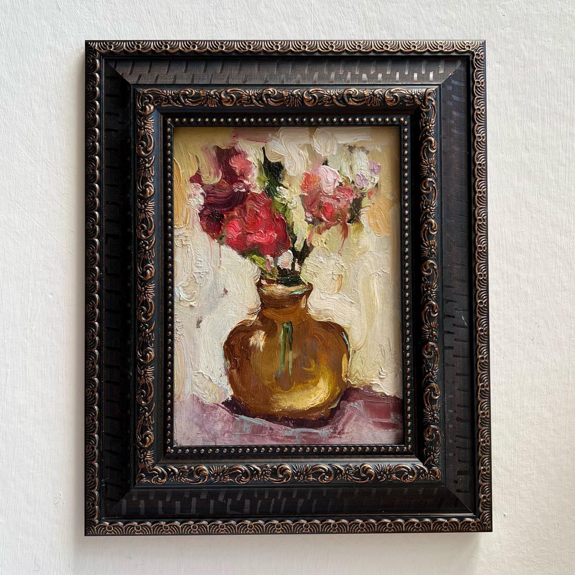 Floral Painting Floral Original Art Peonies Impasto Painting Flowers Small Painting Impasto Peony by DiyaSanat