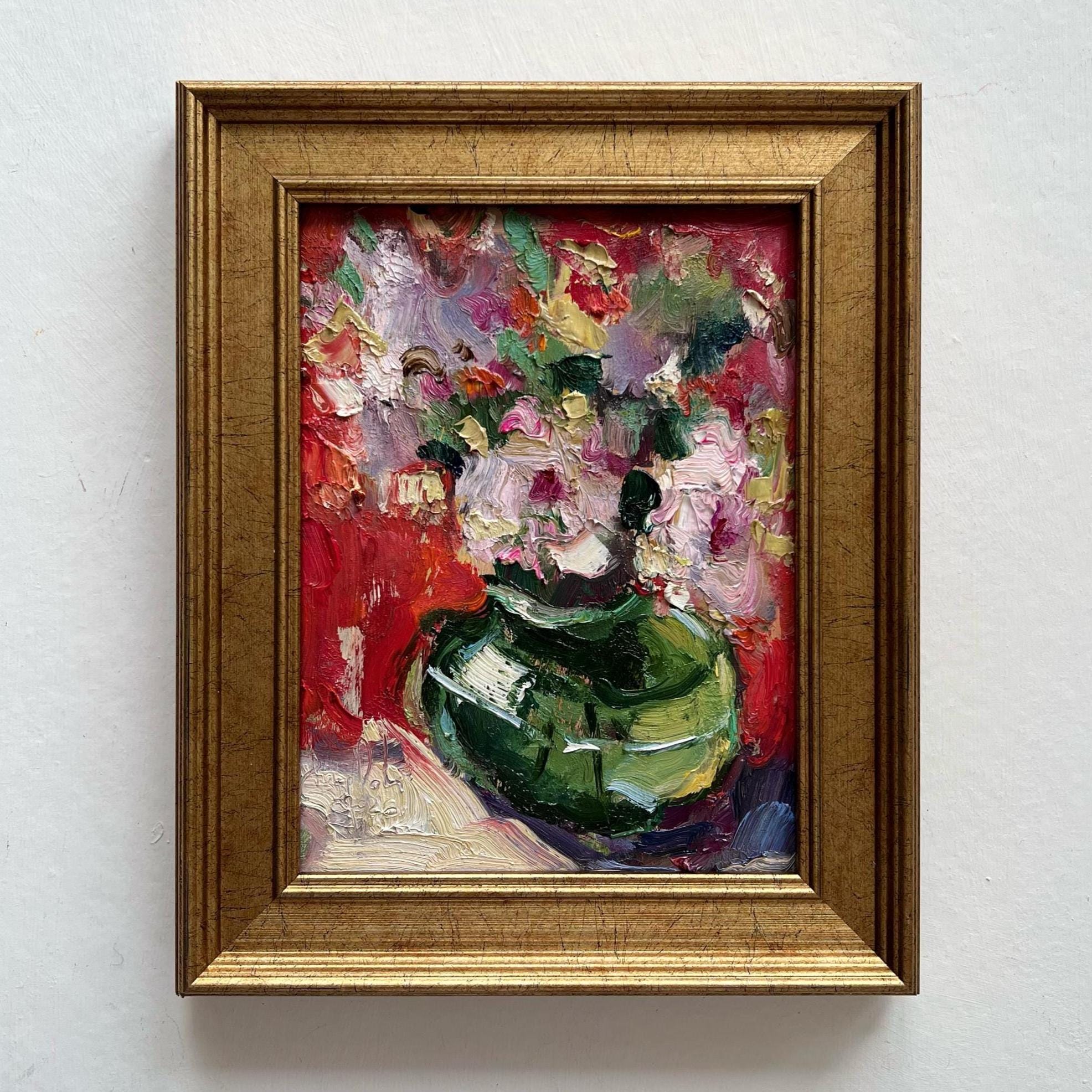 Framed Peonies Impasto Painting: Original Floral Expressionist Art